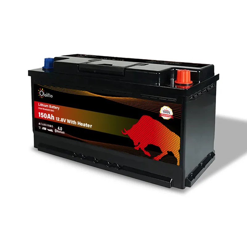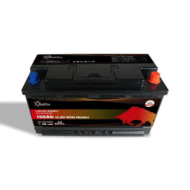 Bateria de lítio LiFePO4 de 150Ah e 12,8V com BMS inteligente, Bluetooth e aquecedor sob o assento para autocaravanas.